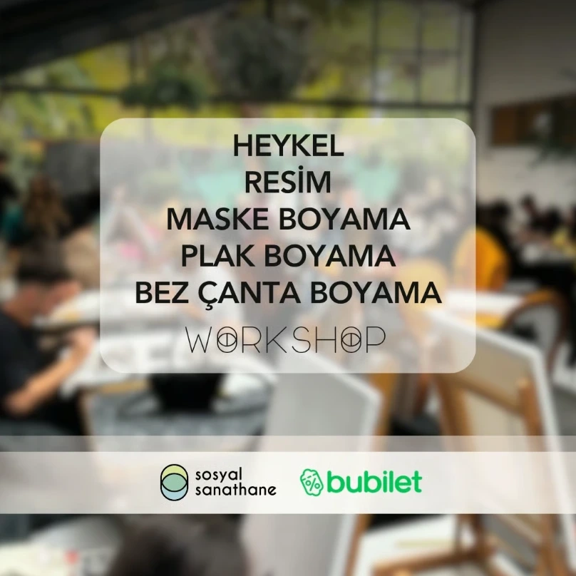 Karma Workshop etkinliklerimizde aynı anda ve aynı ortamda gerçekleşen 5 adet seçenek bulunur: Heykel, Resim, Plak Boyama, Maske Boyama ve Bez Çanta Boyama. Tüm seçenekler için etkinlik süresi 2 saattir. Gerekli tüm yapım malzemeleri biletlerinize dahildir. Sizden yaratıcılığınızın sınırlarını zorlamanızı beklerken; ekip olarak yardımcı da olacağız. Yetenek veya deneyime ihtiyaç bulunmuyor. Ve tüm etkinliklerde olduğu gibi çalışmanız sizin olacak. Şimdiden iyi eğlenceler dileriz! Sevgiler.